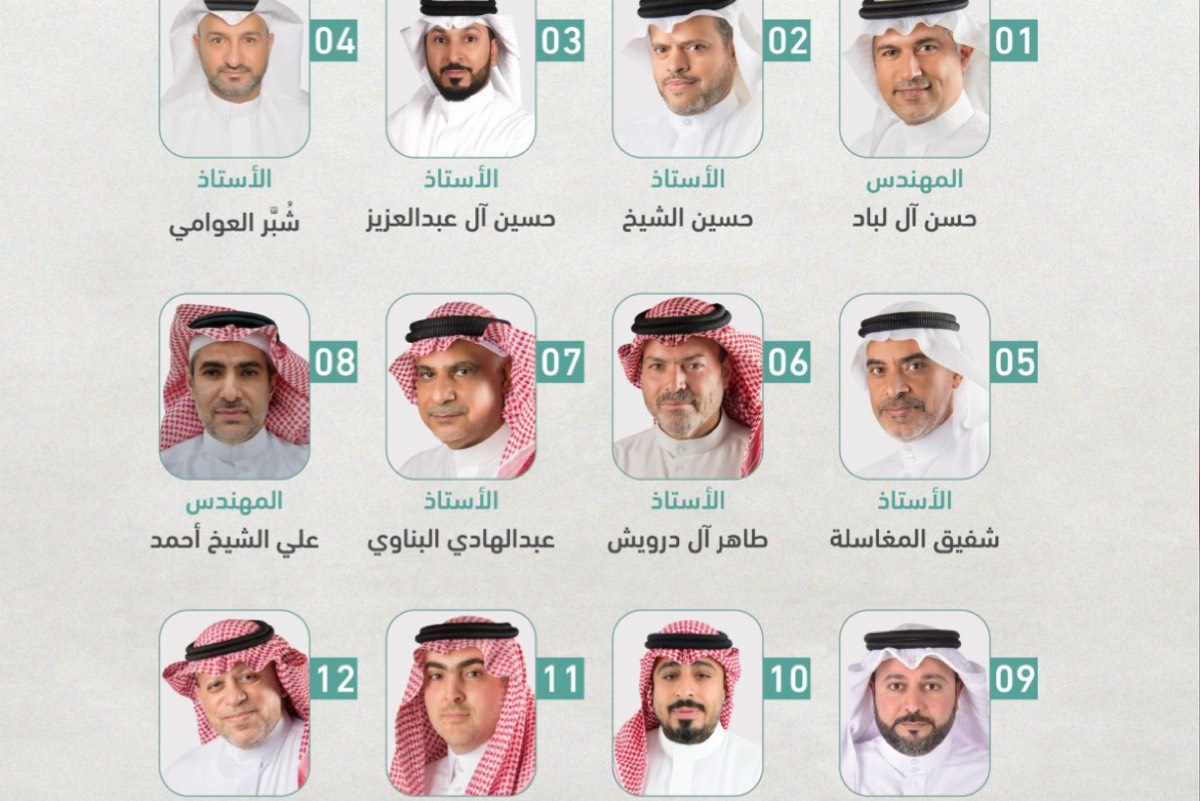 وضمت القائمة النهائية للمرشحين اثني عشر اسمًا من الكفاءات والخبرات المتنوعة، وهم المهندس حسن آل لباد، حسين الشيخ، حسين آل عبدالعزيز، شبر العوامي، شفيق المغاسلة، طاهر آل درويش، عبدالهادي البناوي، المهندس علي الشيخ أحمد، المهندس علي الشيخ جعفر، المهندس محمد المزين، موسى آل نمر، وناجي الفرج.