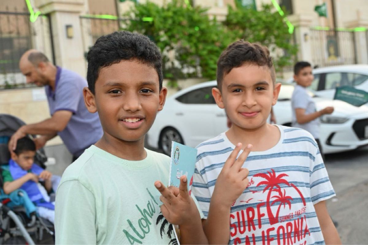 وفي مشهد اجتماعي عبّر عن التلاحم الوطني، انتشر المتطوعون والمتطوعات أمام مقر الجمعية لاستقبال الأهالي والزوار بالورود والأعلام والبالونات الملونة التي أضفت البهجة على قلوب الأطفال، بينما جابت مسيرات كشافة رسل السلام بقيادة القائد الكشفي علي العبندي أرجاء المكان.