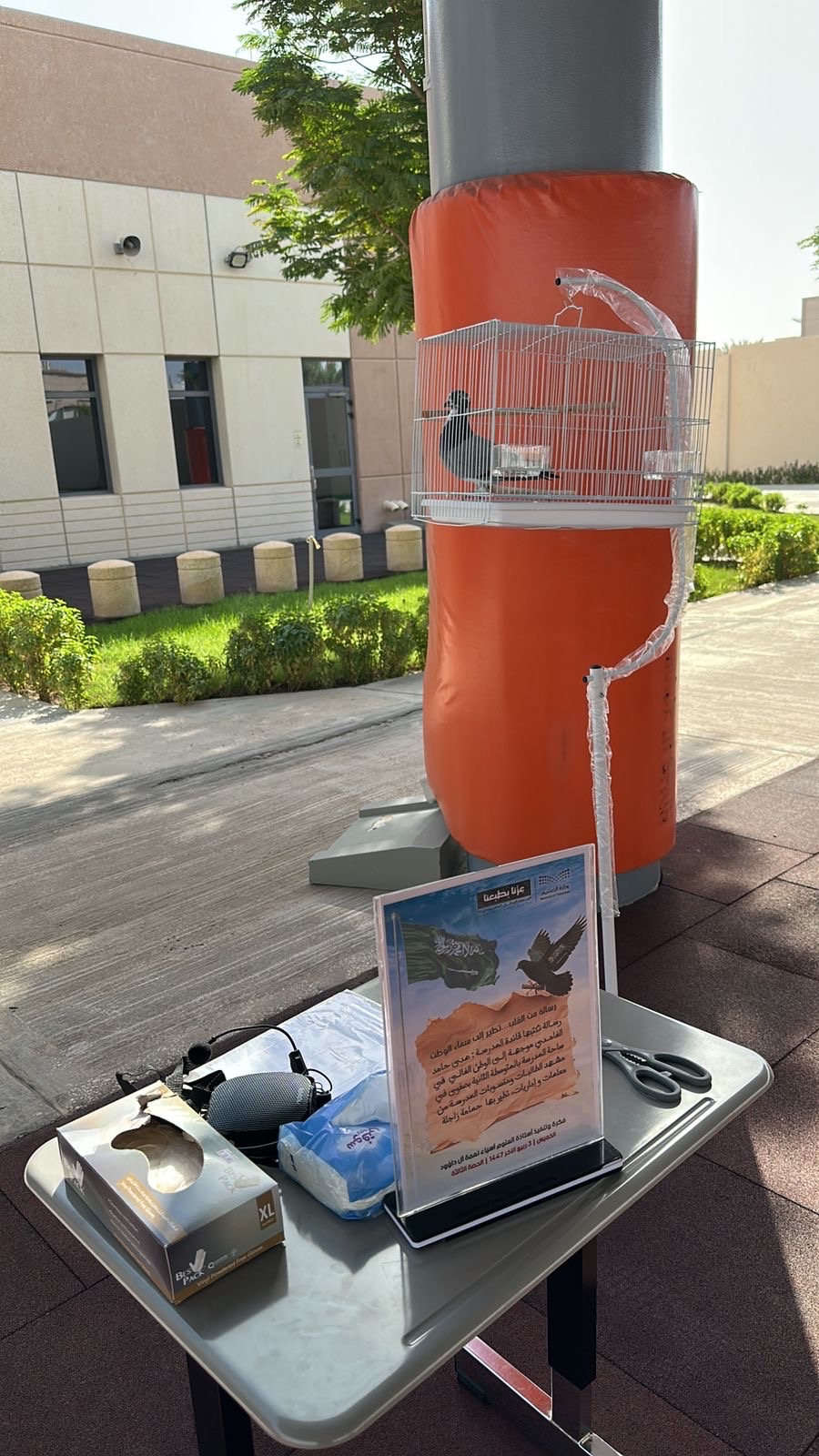 وتضمنت الفعالية قيام قائدة المدرسة بكتابة رسالة وجدانية، عبرت فيها عن مشاعر الحب والاعتزاز بالوطن وقيادته الرشيدة ومنجزاته، قبل أن يتم ربطها بحمامة زاجلة وإطلاقها في ساحة المدرسة أمام الطالبات ومنسوبات التعليم، لترتفع حاملةً معها رسالة رمزية بأن حب الوطن لا يعرف حدودًا.