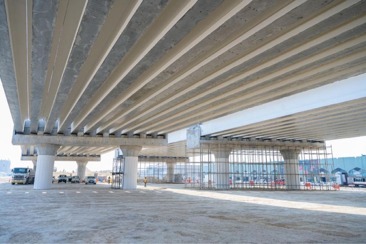 ويتضمن المشروع إنشاء جسر بطول 779 مترًا، يتألف من 8 مسارات في كل اتجاه، بالإضافة إلى أعمال متكاملة تشمل جدرانًا استنادية ومنحدرات ”رامبات“ وحواجز سلامة، بما يضمن تحقيق أعلى معايير الجودة والسلامة المرورية.