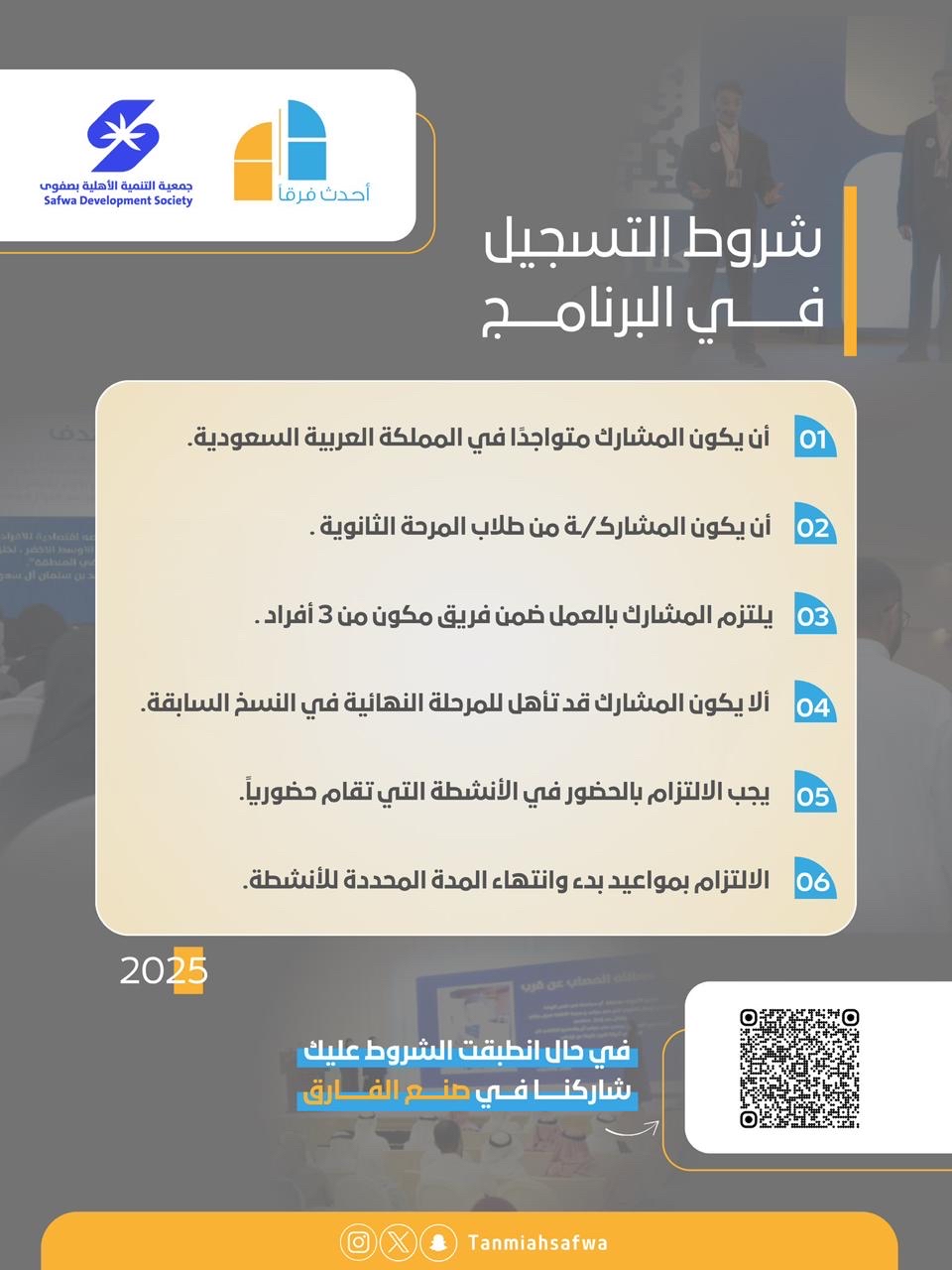 لطلاب الثانوية.. ”تنمية صفوى“ تفتح باب التسجيل لبرنامج ابتكاري