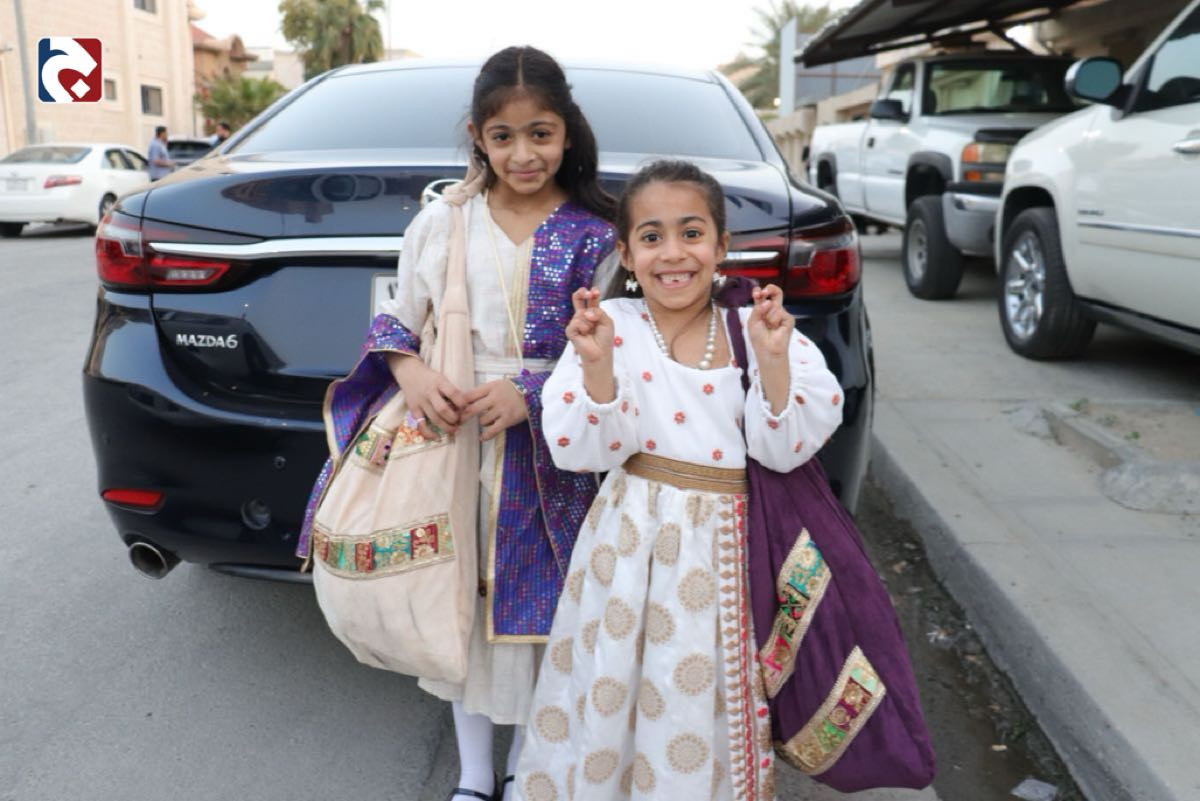 اكتست الشوارع في حي الخضر وتركيا والشاطئ والشبيلي في وقت العصر حلةً زاهية، حيث استغل الأهالي ضوء النهار لإبراز جماليات الأزياء التراثية التي ارتداها الأطفال بوضوح، مما أضفى طابعاً بصرياً مختلفاً عن الأجواء المسائية المعتادة، وسمح بالتقاط صور تذكارية توثق تفاصيل الزينة والملابس بدقة.