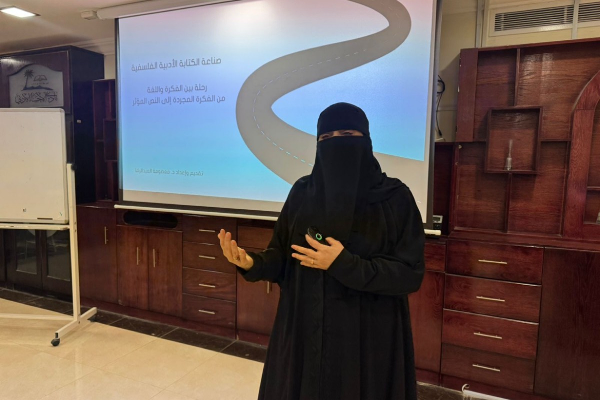 وشهدت الدورة في محطتها الأبرز غوصاً عميقاً في أدوات الصناعة الأدبية للفلسفة، حيث دربت الدكتورة العبدالرضا المشاركات على تقنيات فنية دقيقة شملت المجاز، والرمز، والمفارقة، والصوت الداخلي، موظفةً نصوص الشاعر والفيلسوف أبي العلاء المعري كقاعدة ارتكاز تحليلية، لربط النظرية بالتطبيق العملي عبر أوراق عمل وتمارين جماعية مكثفة.