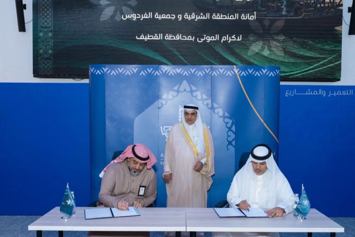 أبرمت أمانة المنطقة الشرقية، ممثلة ببلدية محافظة القطيف، اتفاقية تعاون استراتيجي مع جمعية الفردوس الخيرية لإكرام الموتى، برعاية أمين المنطقة المهندس فهد الجبير.