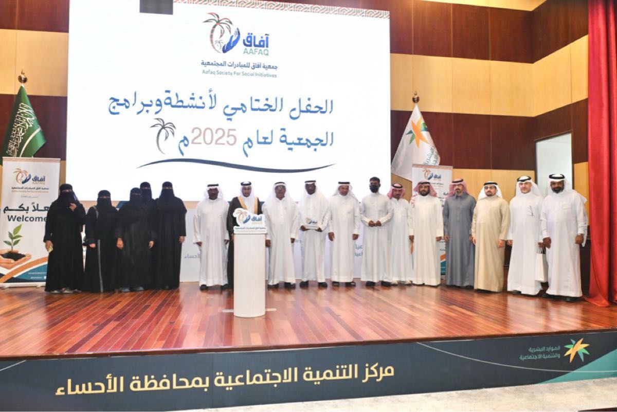 اختتمت جمعية آفاق للمبادرات المجتمعية بالأحساء مساء السبت أنشطتها لعام 2025، مستعرضةً منجزات نوعية خدمت أكثر من 21 ألف مستفيد، وحققت عائداً اقتصادياً تطوعياً تجاوز 10 ملايين ريال، بحضور نخبة من المسؤولين والوجهاء بمركز التنمية الاجتماعية.