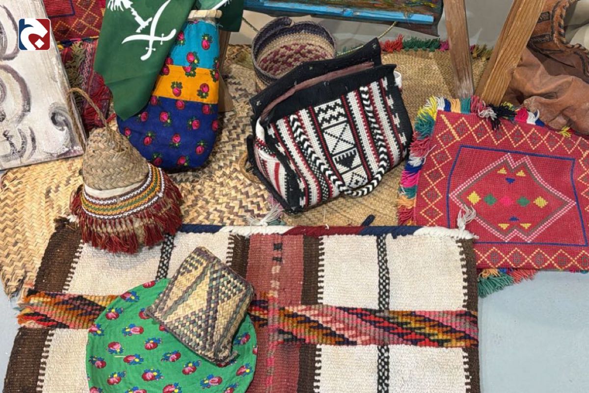 وشملت المعروضات باباً خشبياً قديماً مزيناً برسومات تحاكي العمارة التقليدية، بالإضافة إلى قطع من السدو والتحف التراثية النادرة المرتبطة بيوم التأسيس.