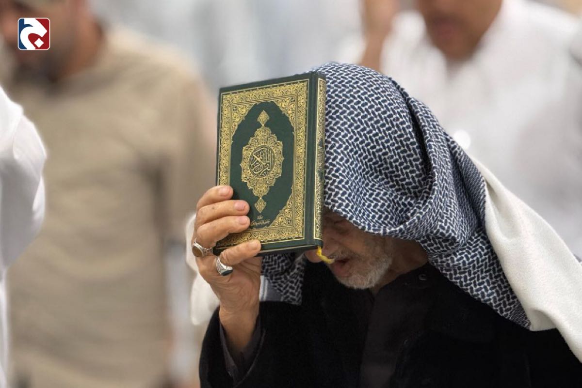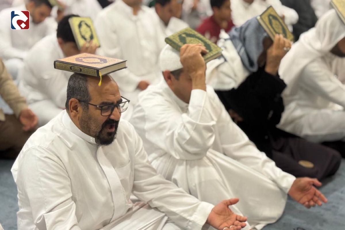 وصدحت حناجر الحاضرين بقراءة دعاء رفع المصاحف والتوسل بالقرآن الكريم، وسط أجواء إيمانية غمرتها أصوات الاستغفار والابتهال إلى الله عز وجل.