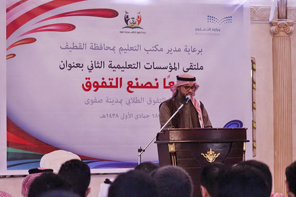 نظمت لجنة التفوق الطلابي بمدينة صفوى ملتقى المؤسسات التعليمية الثاني تحت شعار ”معنا نصنع التفوق“ بمشاركة 24 مؤسسة من مختلف انحاء المنطقة الشرقية.