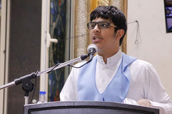 وبدأ الحفل بآيات من الذكر الحكيم تلاها الطالب محمد السادة، تلتها كلمة الطلاب ألقاها الطالب العباس علي الشيتي معبراً فيها عن سروره وسعادته لمشاركته في برنامج الدورات الثقافية «المتميزون»