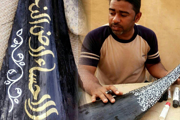 شارك الفنان الأحسائي حسين الخضيري بالرسم على الحجر والزخرفة على كرب النخيل ضمن فعاليتين متتاليتين وهما: فعالية «الفريج» التي نظمت على جبل القارة في الأحساء وكذلك مهرجان الزهور الذي اختتم أمس الثلاثاء في منتزه الملك عبدالله البيئي في محافظة الأحساء.