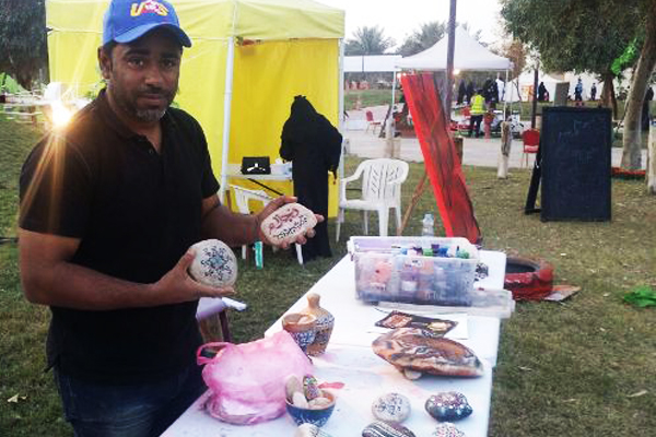 وأشار إلى أن إقبال الزوار على فكرة الرسم على الحجر وكرب النخيل كبيرا، مرجحا السبب لكون الفكرة جديدة ومختلفة عن الرسم العادي.