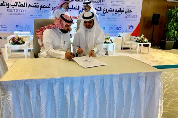 وقّع وزير التعليم أحمد العيسى الأربعاء، مشروع التحول نحو التعليم الرقمي لدعم تقدم الطالب والمعلم بين الوزارة وشركة تطوير لتقنيات التعليم، حيث تم تخصيص 1.6 مليار ريال لجميع مراحل المشروع خلال السنوات الثلاثة القادمة.