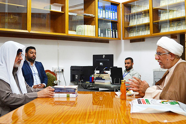 أستقبل مدير مركز تراث كربلاء التابع لقسم شؤون المعارف الإسلامية والإنسانية في العتبة العباسية المقدسة الدكتور إحسان الغريفي، الكاتب والباحث الإسلامي الشيخ عبد الله اليوسف.