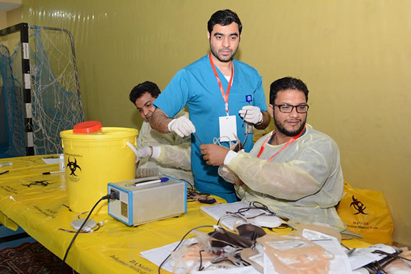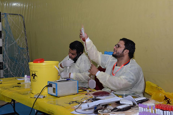 بالصور.. 114 متبرعاً بالدم في اليوم الأول للحملة الثامنة في الخويلدية
