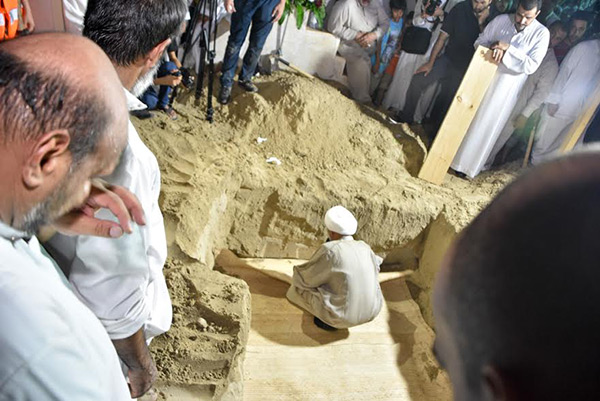 ووُري الفقيد آل هاني الثرى بعد أن قام الشيخ حسن الخويلدي بتلقينه وسط أجواء من الحزن والدموع على فراقه الذي عُرف لدى الجميع بمشاركاته في المحافل الدينية والإجتماعية على مستوى القطيف خاصة والخليج عامة.