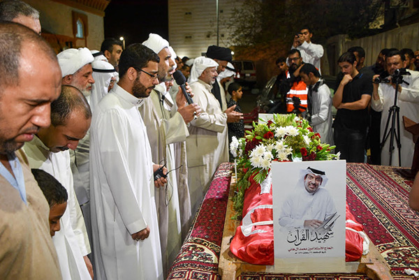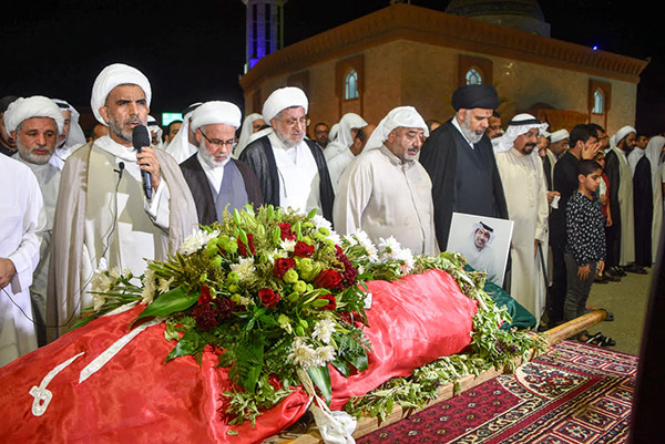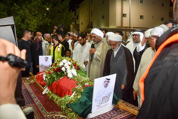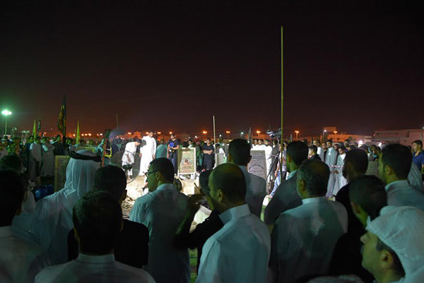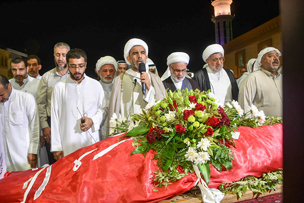 وبدأت مراسيم التشييع التي أُقيمت في مسجد الإمام الهادي بقراءة القرآن الكريم تلاها القارئ حسن آل عبد ربه، بعد نودي للصلاة على الجنازة خارج المسجد.