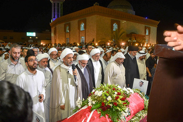 بعدها صلّى جموع المشيعين صلاة الميت على روح الفقيد، حيث أمَّ المصلّين الشيخ حسن الخويلدي.