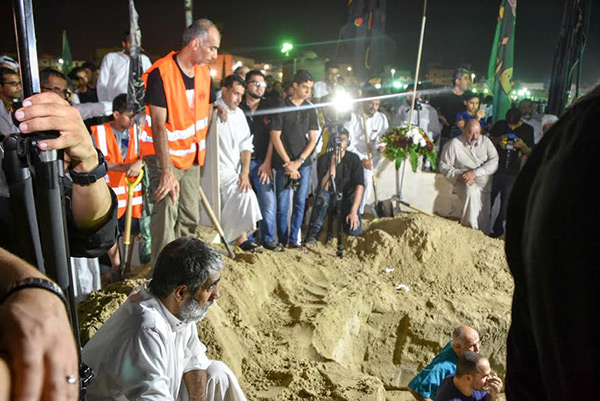 ثم اصطفّ المشيعون سماطين ومررّت عليهم الجنازة سالكين بها الطريق المؤدي للمقبرة على وقع صوت الرواديد الذين نعوا بقصائدهم الفقيد الشهيد أمين آل هاني.