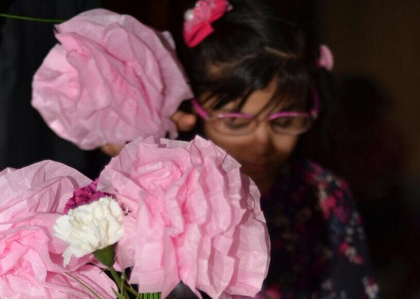 وأشارت إلى أن الطاولات والكراسي لركن قراء القصة عملت من مواد معاد استخدامها لترسيخ الفكرة في نفوس الأطفال.