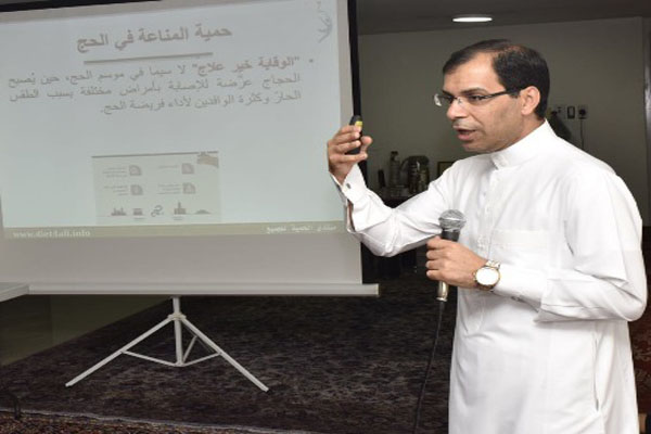 وأشار إلى أن الحجاج عرضة للإصابة بأمراض مختلفة بسبب الطقس الحارّ وكثرة الوافدين لأداء فريضة الحج، ناصحا بتقوية الجهاز المناعي لتحصينه من الأمراض.