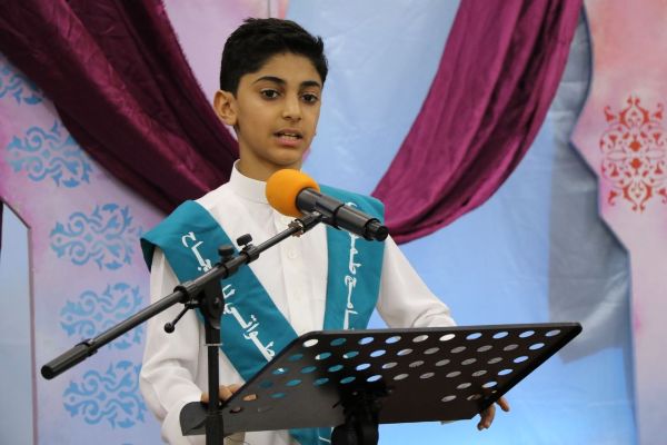 بدأ البرنامج بتلاوة عطرة لآيات من الذكر الحكيم بصوت الطالب حسين آل الشيخ، وألقى الطالب عباس آل سعيد كلمة الطلاب، وتلتها قصيدة منشدة بعنوان «عوام وجه الضياء» من كتابة وتلحين الشاعر عبدالله آل غاوي، وأداء مجموعة طموحي الإنشادية.