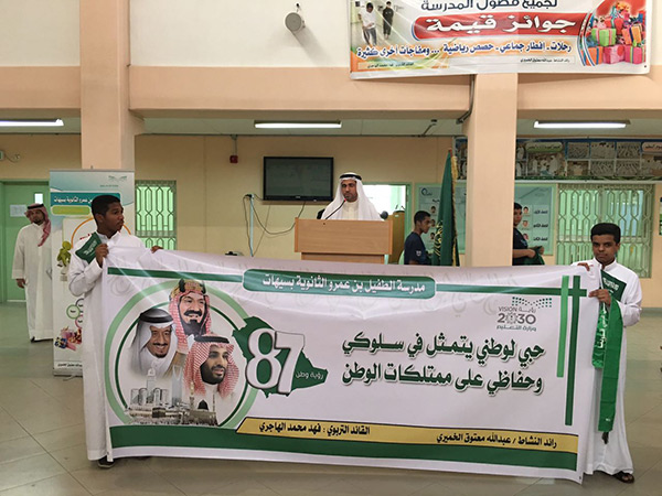 أحتفلت مدارس القطيف أمس باليوم الوطني السابع والثمانين حيث أعدت المدارس العديد من البرامج للاحتفال بالمناسبة الوطنية وبهدف تعزيز الانتماء والولاء للوطن في نفوس الطلاب والطالبات.