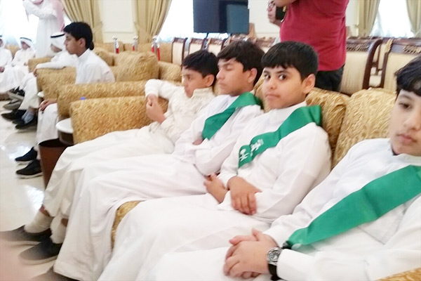 طلاب مدارس العوامية يهنئون محافظ القطيف بمناسبة اليوم الوطني
