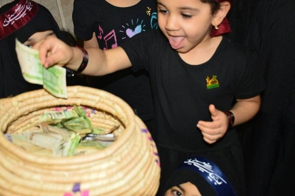 وعملت اللجنة في ختام اليوم العاشر على تعليم الأطفال ثقافة إخراج الصدقة لدفع البلاء عن الإمام الحجة «عجل الله فرجه الشريف» وكتابة أمنية للإمام الحسين