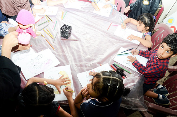وأضافت: بعدها تركت المجال للحضور كي يصنعون خيالهم وفكرة من أنفسهم، كل شخص بحسب ما يرى اللوحة وما تحدثه به.