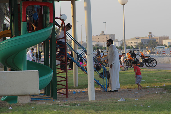بالصور.. الأجواء المعتدلة تغري الصغار والكبار في كورنيش القطيف