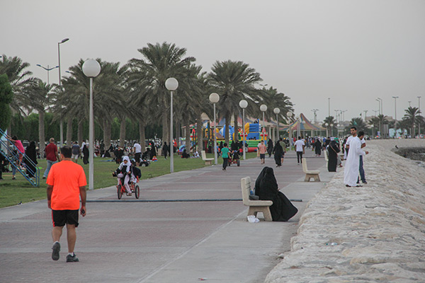 ازداد أرتياد المواطنون لكورنيش القطيف بدءاً من يوم الأربعاء الماضي أول اجمل أيام السنة الخمسين، حتى في أوقات الظهيرة للتنزه وتناول وجبة الغداء.