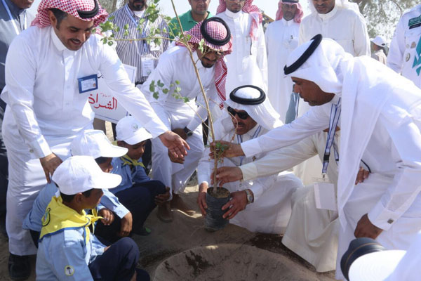 طلاب يشاركون في انطلاق مبادرة تشجير غابة جواثا
