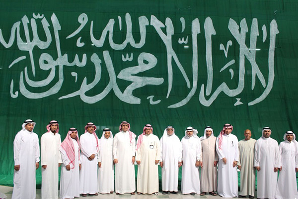 طلاب ابتدائية بصفوى يحيكون أكبر علم للمملكة
