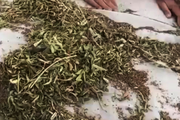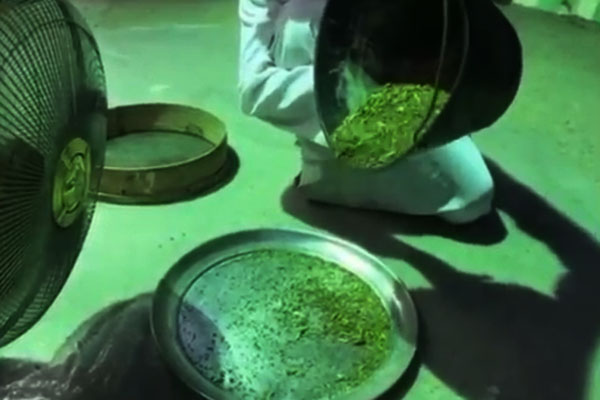 ويحصد المزارعين نبات السمسم الأخضر، ويتركونه لمدة عشرة أيام أو 15 يوم حتى يجف ثم ينشرونه على الأرض ليتساقط السمسم ويجمعونه، ومن ثم يصفونه عبر توجيه مروحة هوائية نحوه لتتطاير الشوائب تبقى حبوب السمسم، ومن ثم يغربلونه بالغربال كتصفية أخيرة.
