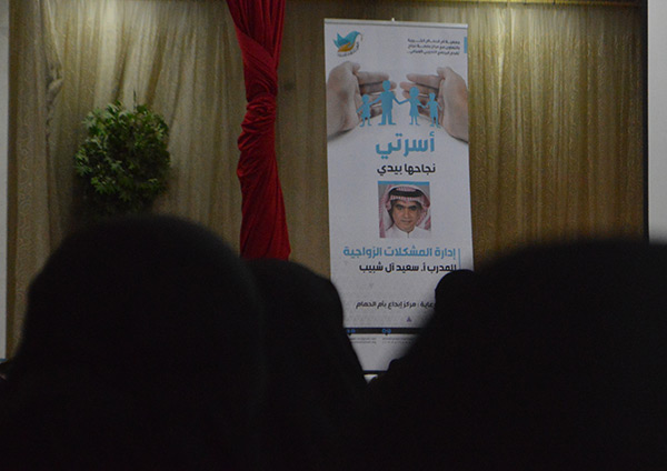 ومن جانب أخر قدم المدرب سعيد آل شبيب محاضره بعنوان ”إدارة المشكلات الزواجية“ هدف من خلالها الى زيادة الوعي الذاتي لكلا الزوجين حول ادارة المشاكل الزوجية من خلال اكسابهم بعض المهارات اللازمه لتحقيق الاهدف.