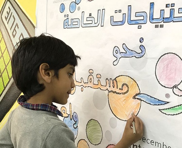 500 طالب يحتفون باليوم العالمي لذوي الاحتياجات الخاصةوشارك الطلاب والمعلمين وأولياء أمورهم في عدة فعاليات منها المرسم الحر والإذاعة الصباحية وعمل المطويات والصحف والنشرات.