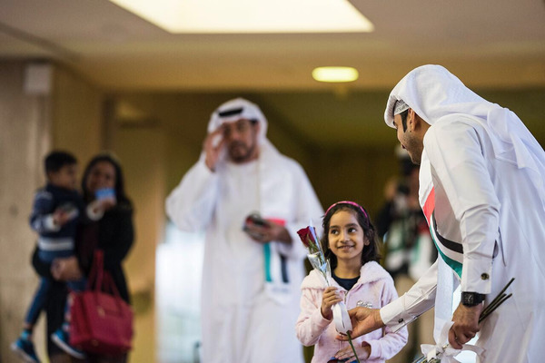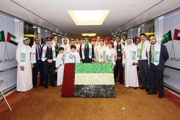 وقدمت الهدايا والزهور ل700 إماراتي من المسافرين القادمين والمغادرين على رحلات طيران الاتحاد والإمارات.
