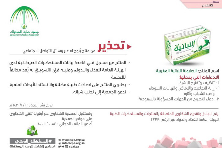 حذرت جمعية حماية المستهلك من منتج ”الصابونة النباتية المغربية“ والتي يروج لها عبر وسائل التواصل الاجتماعي.