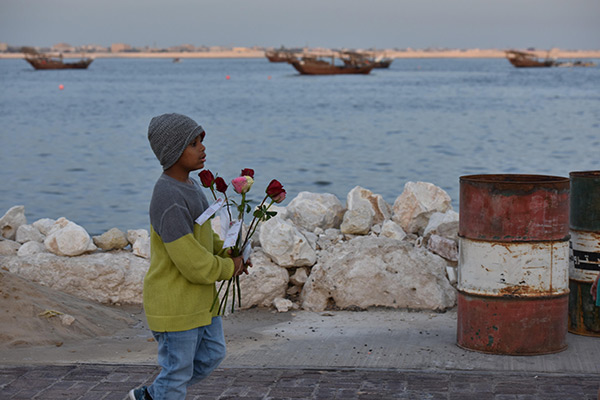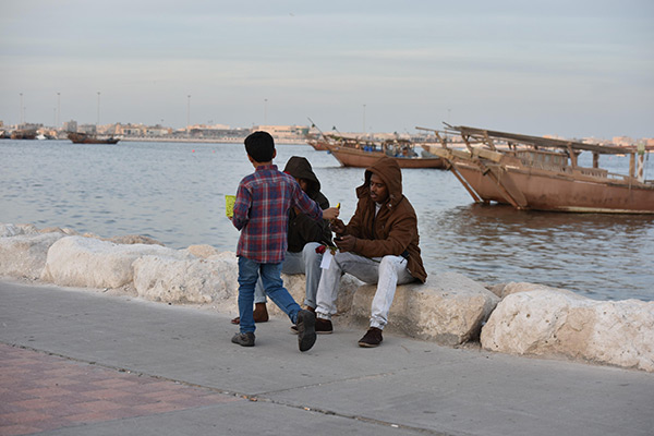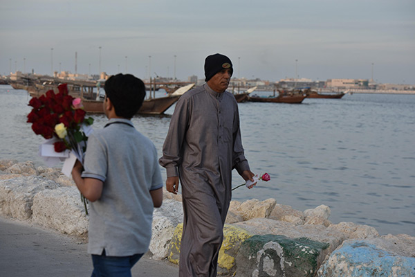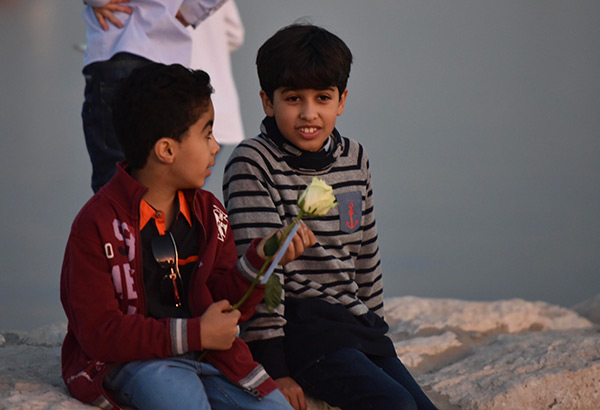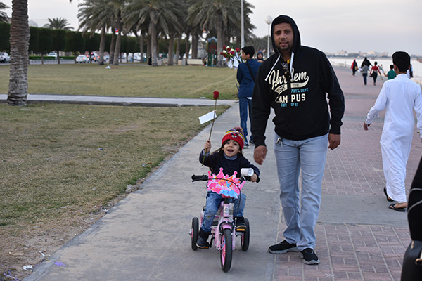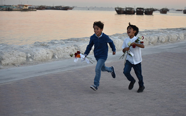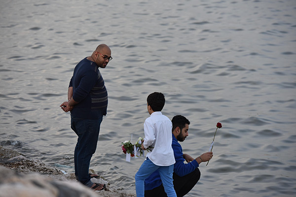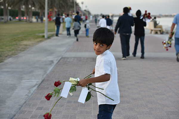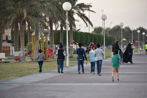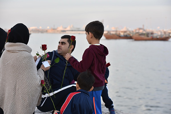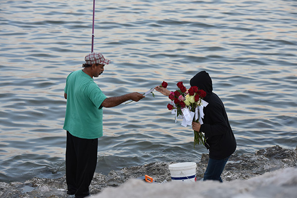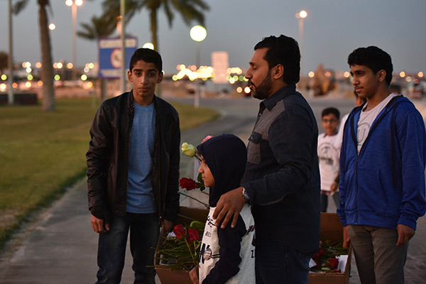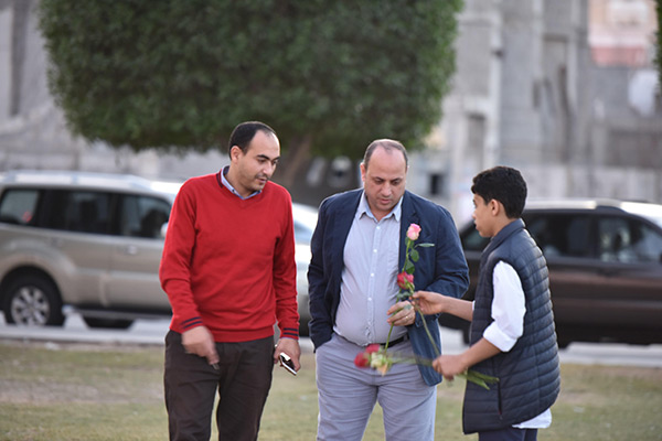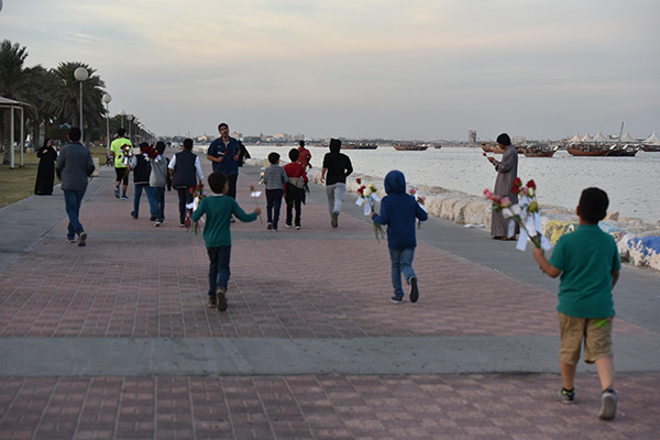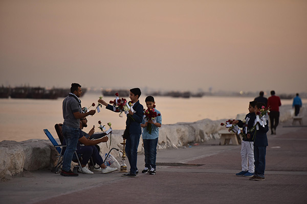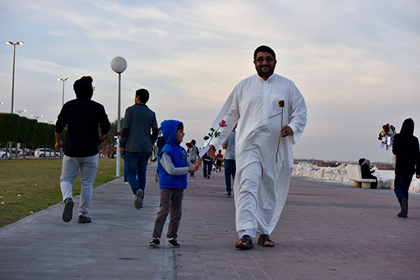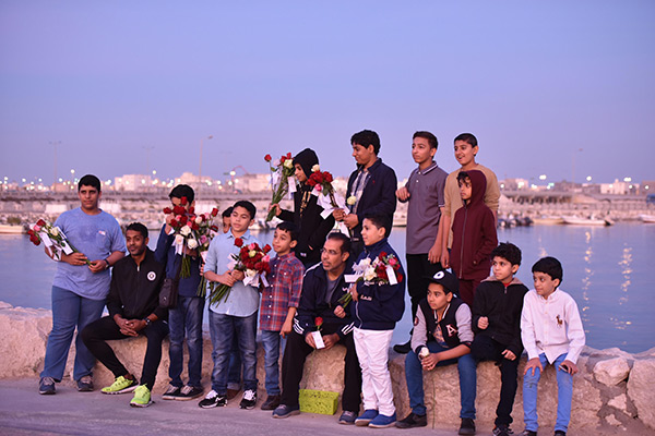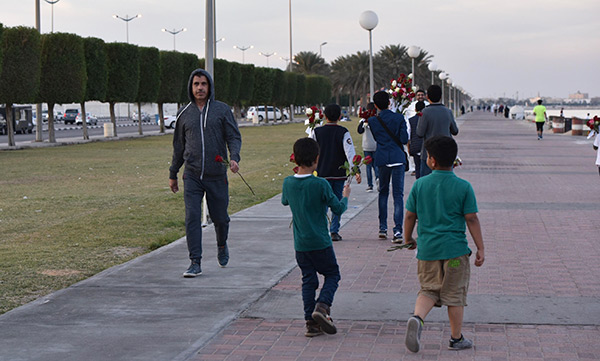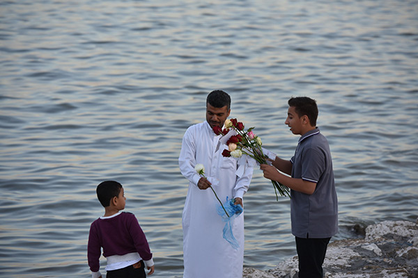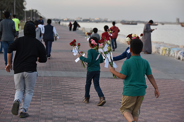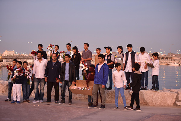 بالصور.. ”فتية آمنوا“ يوزعون الورد بمناسبة مولد النبي محمد في كورنيش القطيف
