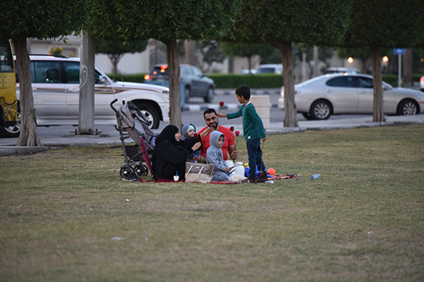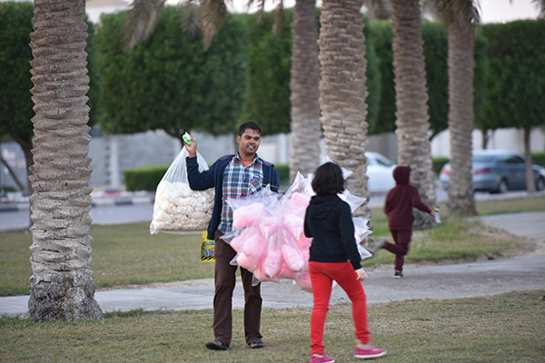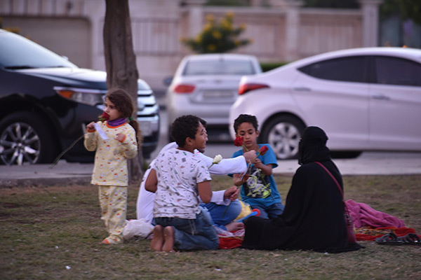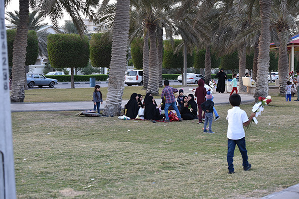 ووصف المنظر بقوله ”كان المنظر جميلًا جدًا، فحين اقتربت ناحيتهم وجدت الكثير من الفتية وهم يحملون السلات المنوعة التي تحوي الورد والريحان إضافة للحلويات“.