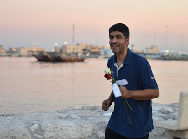 وذكر الكاتب حسن حمادة في صفحته على الفيس بوك أنه كعادته كان يمارس الرياضة في كورنيش القطيف بالمجيدية، ولفت نظره مجموعة من الفتية وهم يهدون الورد لكل من يصادفهم - بمناسبة #المولد_النبوي للرسول الأكرم ﷺ - مع تضمين كل وردة لكلمة محمدية..