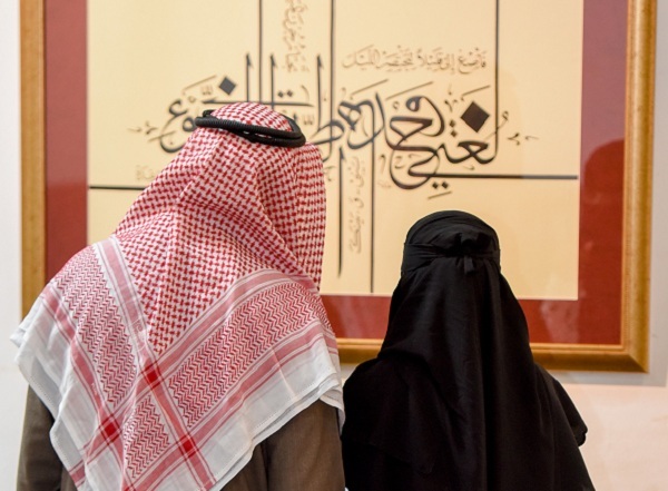 وصاحب الفعالية معرض الخط التشكيلي للحرف العربي والذي شارك فيه 21 فنانًا وفنانة.
