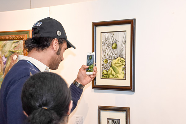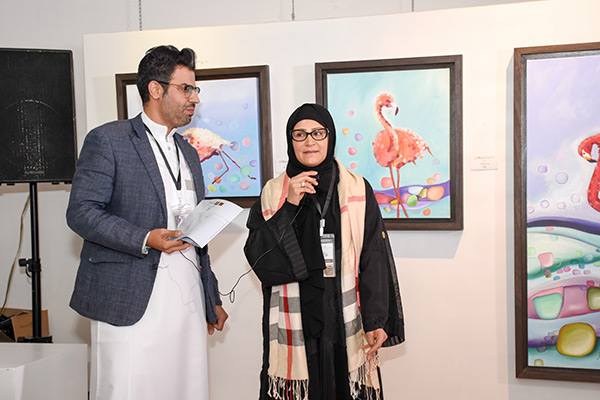 وقالت في كلمتها التي ألقتها للحضور ”إن الفنان في بعض الأحيان لايستطيع التعبير ولكنه في المقابل لديه قدرة أكثر على الرسم وأن الكاتب هو من يستطيع ترجمة الأفكار بصورة علمية ينقلها للمتلقي“.