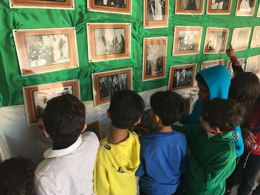 وتحدثت الصور عن مراحل حياته وإنجازاته في كل مرحلة حتى إعلان أضخم ميزانية في تاريخ المملكة قبل بضعة أيام، وبها جددوا الطلاب الولاء والبيعة للملك وولي عهده.