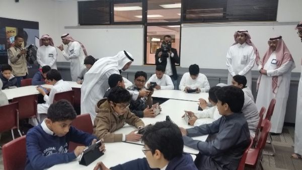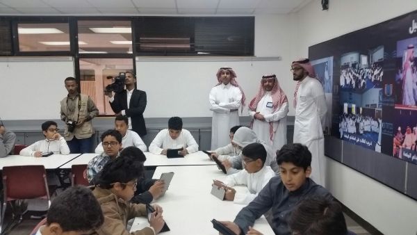 وشاهد الحضور آلية تفعيل الدرس وشرحه وتدريباته، عبر سبورة إلكترونية، متصلة بنظام التشغيل مع أجهزة الحواسيب اللوحية «ipad» المتوافرة لدى جميع طلاب الفصل، كما تابعوا مسابقة طلابية في موضوع الدرس عبر التقنية الإلكترونية نفسها.