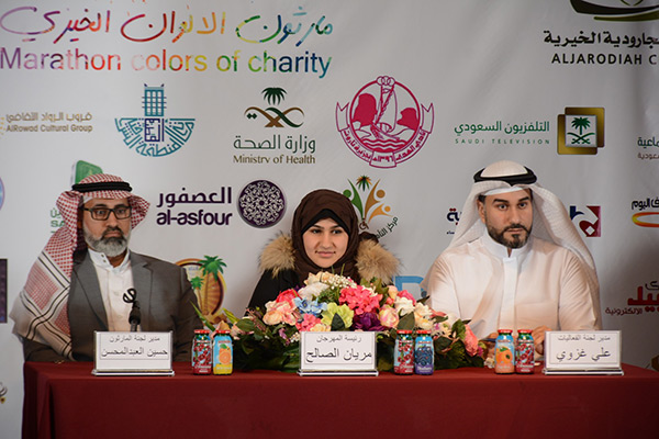 دشن رئيس مهرجان ماراثون الألوان الخيري الإعلامية مريان الصالح المؤتمر الإعلامي بمشاركة اللجنة العليا المنظمة للفعالية مساء الخميس بمقر جمعية القطيف الخيرية، وبرعاية ”جهينة الإخبارية“.