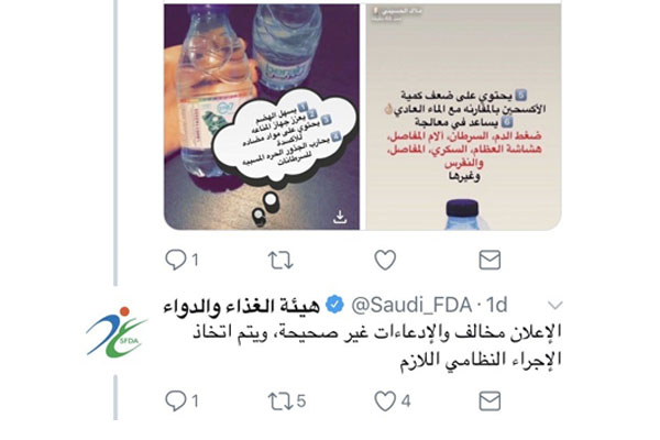 ونفت هيئة الغذاء والدواء صحة المعلومات الواردة ضمن الإعلان والتي وصفتها بالإدعاءات غير الصحيحة عبر حسابها الرسمي في «تويتر»، واعدة بمتابعة الأمر واتخاذ الإجراء النظامي اللازم حول الإعلان المخالف.