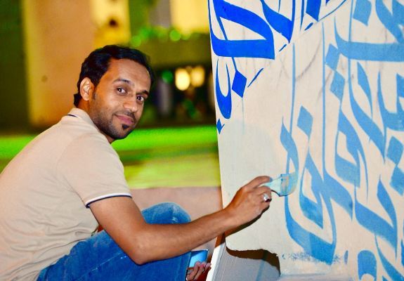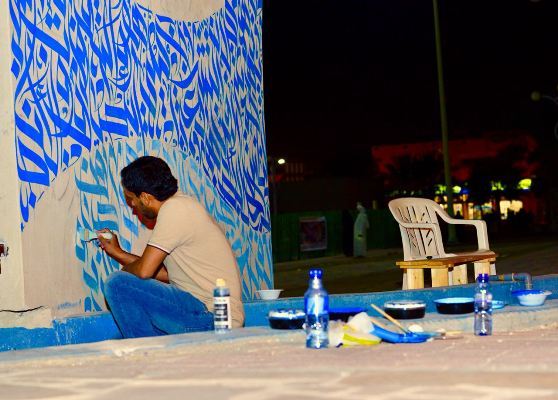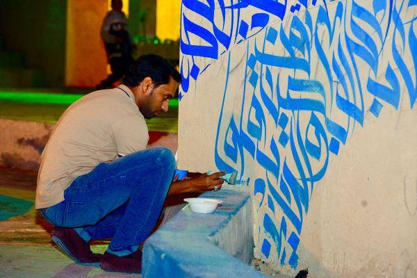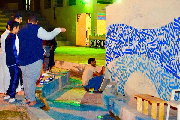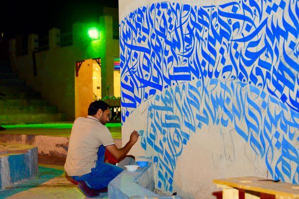وأشار إلى أنه نسق مع المنظمين بقصر محيرس لتحويل أحد الجدران إلى لوحة فنية باستخدام ألوان الأكريليك، وهي عبارة عن مخطوطة لجذب الأنظار بإقتباسة ”الفن التشكيلي هو لغة جميلة يفهمها كل الناس بكل الأطياف والثقافات والأجناس“.