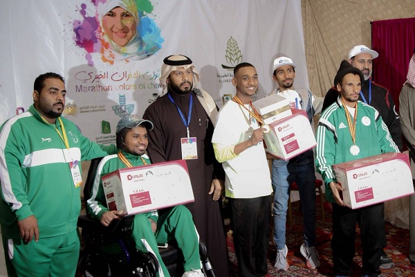 وحصل فيها المتسابق سعود العلواني من ذوي الهمم «إعاقة دماغية» على المركز الأول والميدالية الذهبية وجائزة عينية، كما قدمت له هدية خاصة «الحذاء الذهبي» من إحدى الشركات أهداها له اللاعب الدولي نور الصناع.