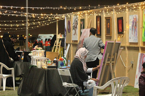 ورسمت الفنانة سمر المؤمن في اليوم الاخير من المهرجان لوحتها بالوان الفحم على الارض وكتبت تحتها ”مهما يحصل الحياة حلوة“.